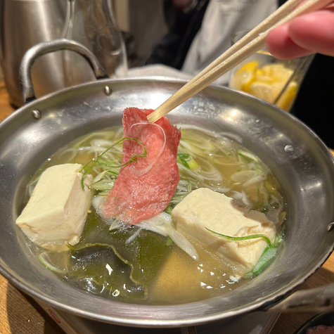 最後に「タンしゃぶ」。薄くスライスされた牛タンを、出汁がきいたスープでさっとしゃぶしゃぶするスタイルです。